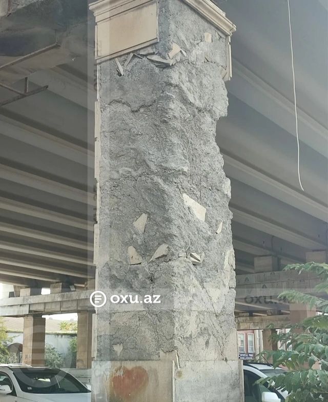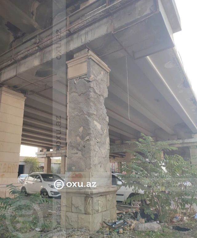Bakıda “Çermet” körpüsü kimi tanınan yol ötürücüsünün sütunlarının birində çatların yarandığı və aqlay üzlük daşının töküldüyü iddia olunur.