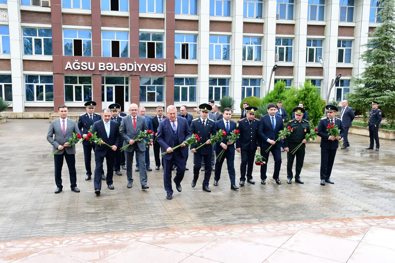 Öncə tədbir iştirakçıları Ümummilli lider Heydər Əliyevin Ağsu şəhərinin mərkəzində yerləşən abidəsini ziyarət edərək önünə gül-çiçək dəstələri düzmüşlər.