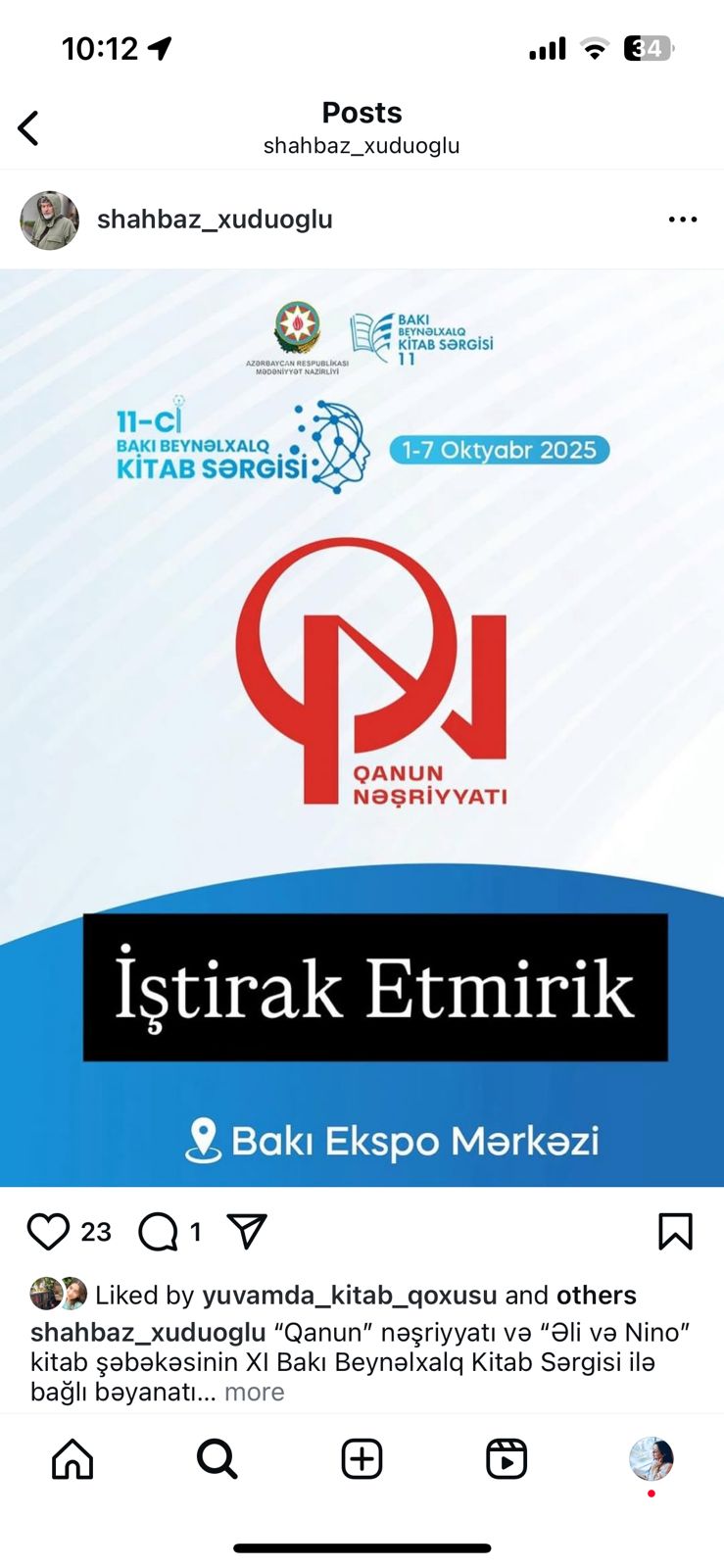 ““Qanun” nəşriyyatı və “Əli və Nino” kitab şəbəkəsinin XI Bakı Beynəlxalq Kitab Sərgisi ilə bağlı bəyanatı