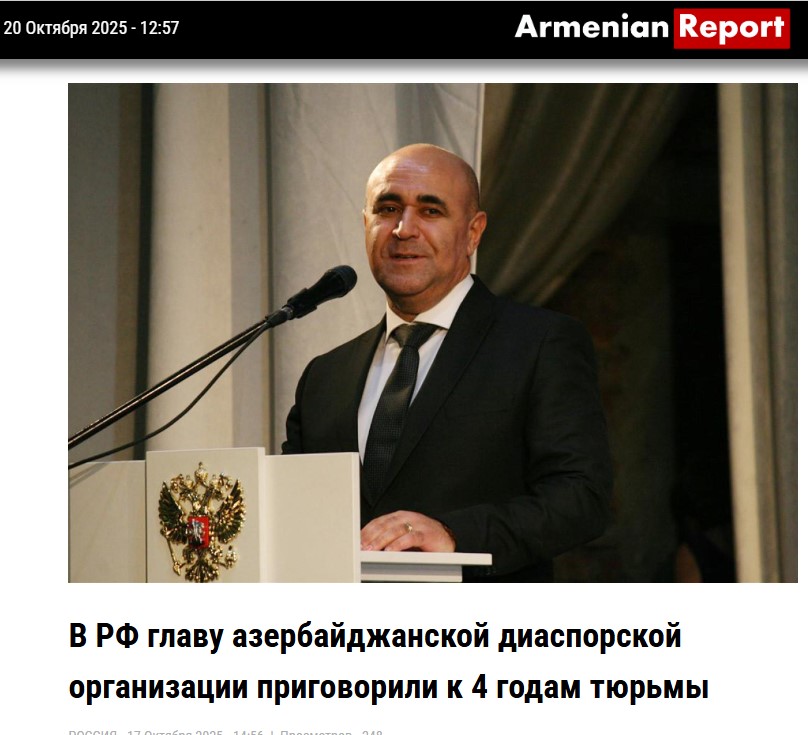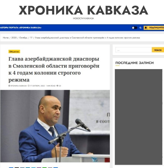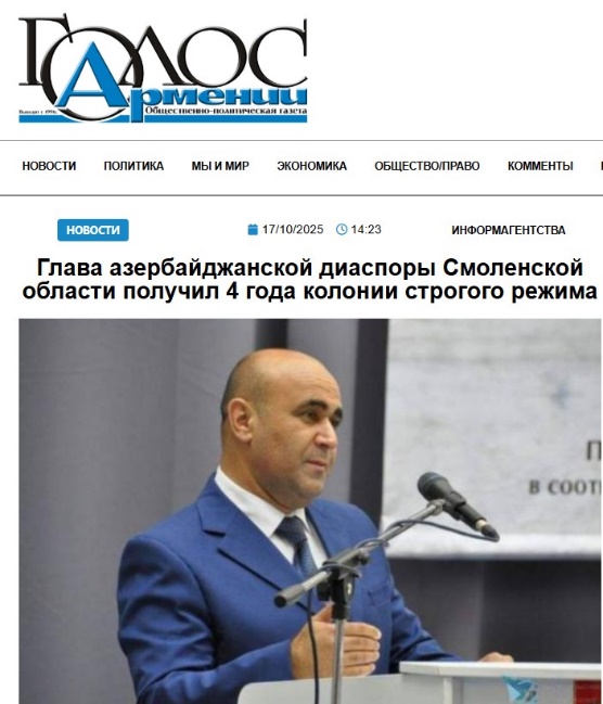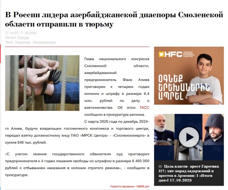 Rusiyanın Smolensk vilayəti Milli Konqresinin rəhbəri, iş adamı Faiq Əliyev rüşvət işi üzrə 4 il həbs və 8,465 milyon rubl cərimə olunub.